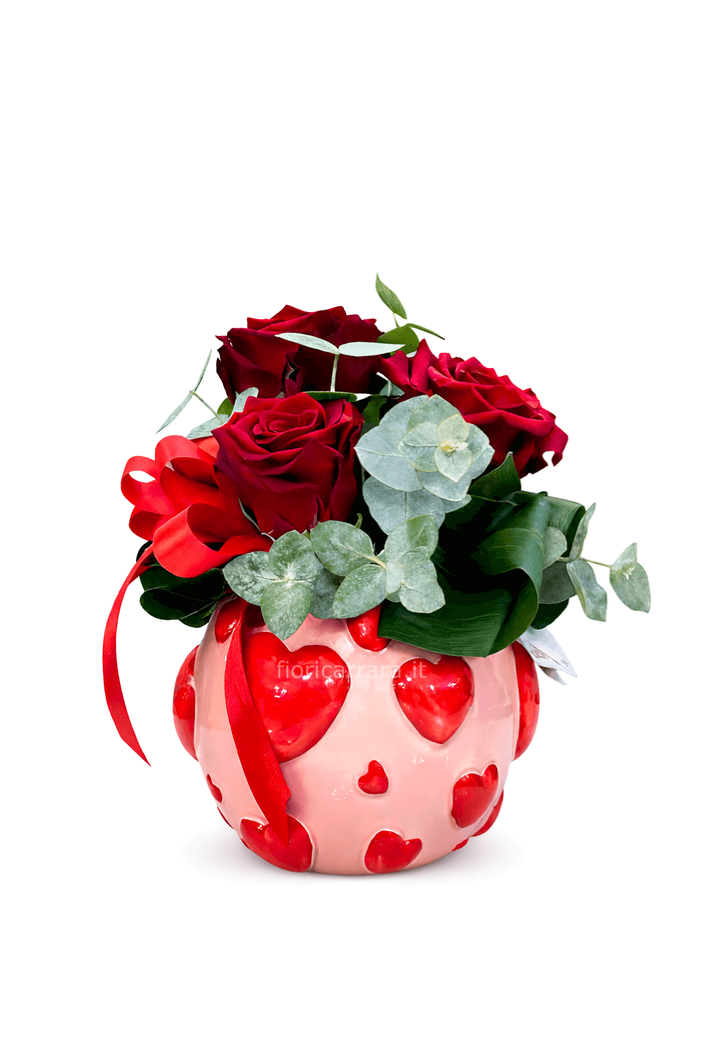 | Vaso cuori+ rose rosse Cod. 123441 | € 45,00 | Quantità : | |